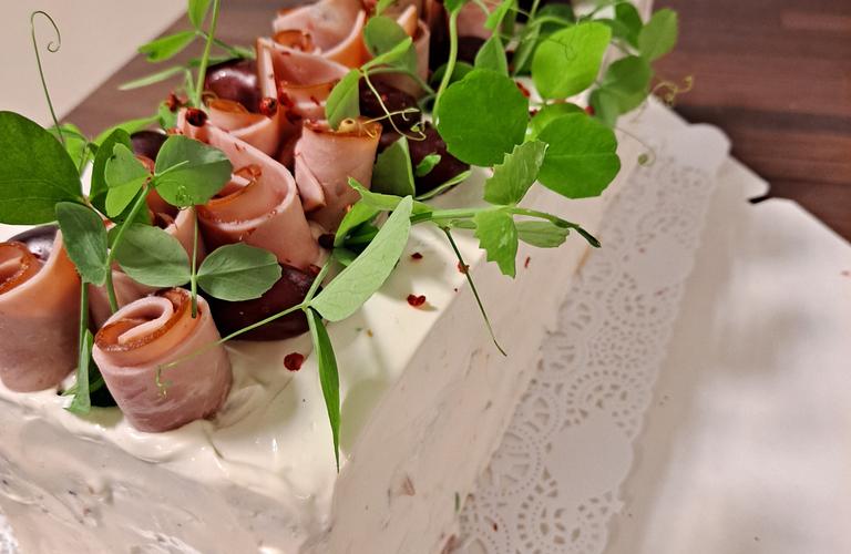 Mahtavan makuinen ja täyttävä voileipäkakku. Useampia täytevahtoehtoja saatavilla.